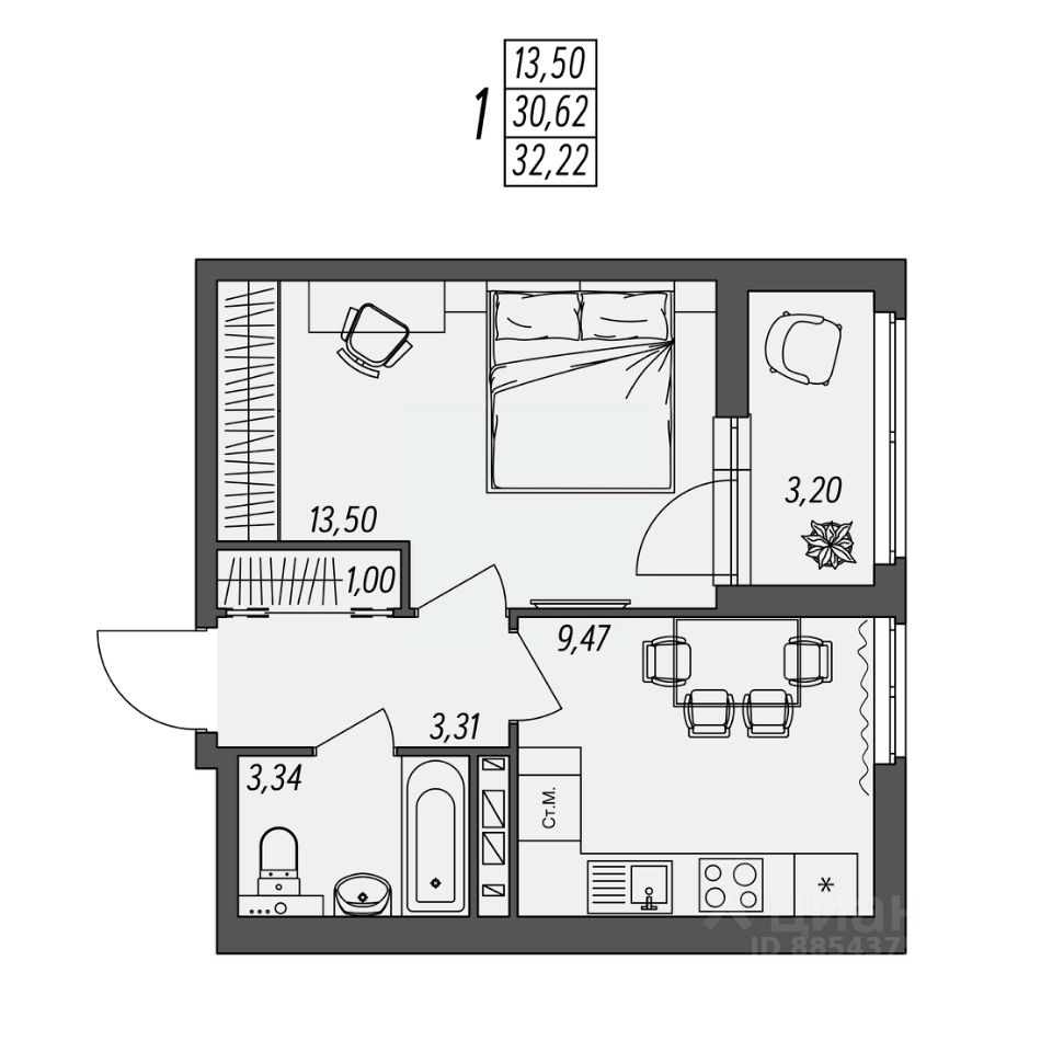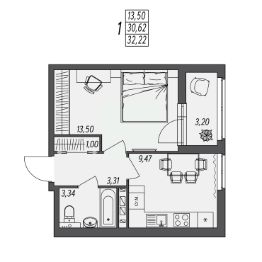 Общая площадь32,22 м²