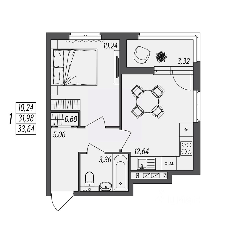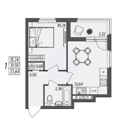 Общая площадь33,64 м²