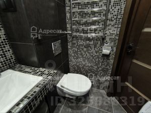 Современный совмещённый сан. узел, с вместительным шкафом для хранения бытовой химии и аксессуаров над инсталляцией.