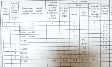 Квартира находится на третьем этаже. Общая площадь — 68,5 кв. м. Из них 41,4 кв. м — жилая площадь, а 10,7 кв. м — кухня.