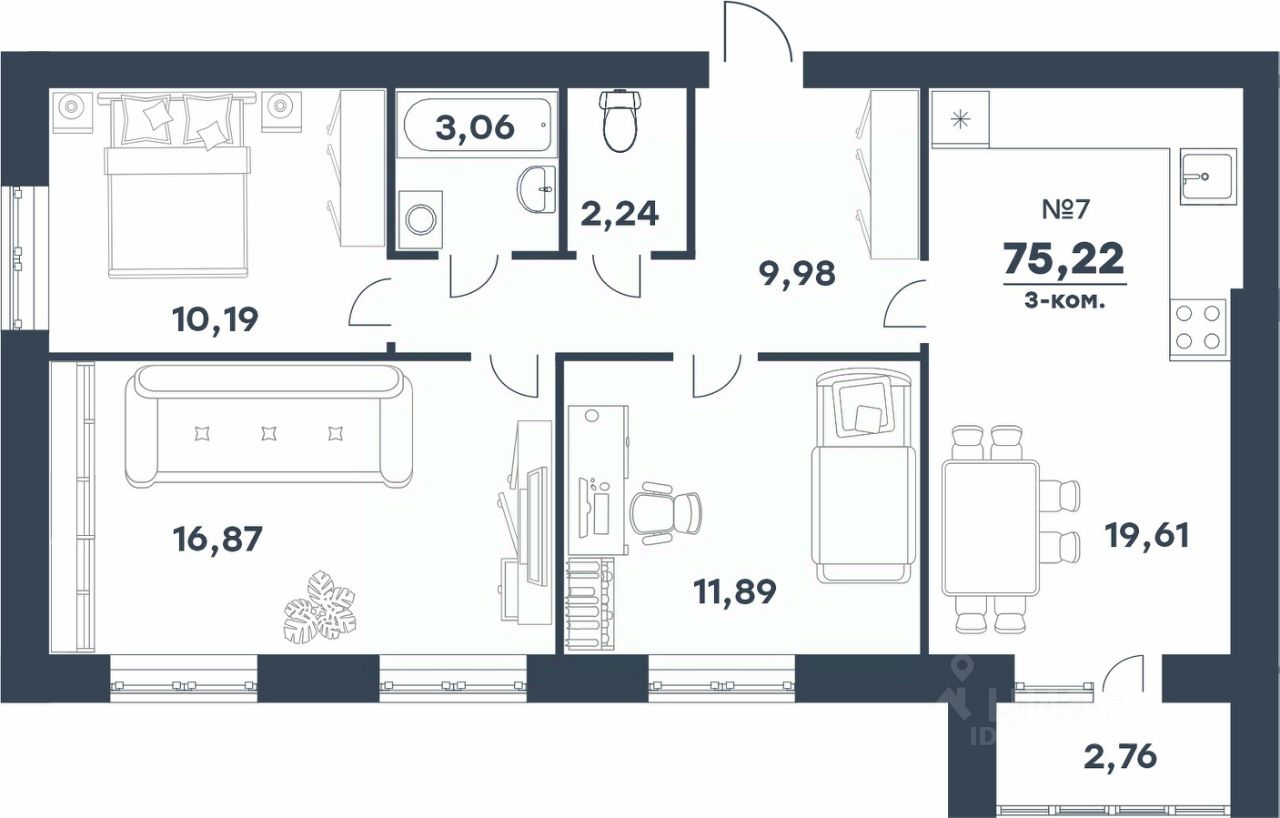 Продаётся 3-комнатная квартира в строящемся доме (ЖД 214 (Ижаева, д. 3а)), срок сдачи: IV-кв. 2026, общей площадью 75.22 кв.м., на 1 этаже. Микрорайон располагается в Советском районе города, который отличается развитой социальной и коммерческой инфраструктурой. В комфортной зоне доступа - ТРК "Акварель", гипермаркет "Лента", ВолГУ, Кардиоцентр.