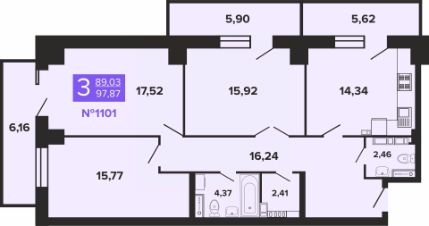 Продается 3-комн. квартира, 97,87 м²