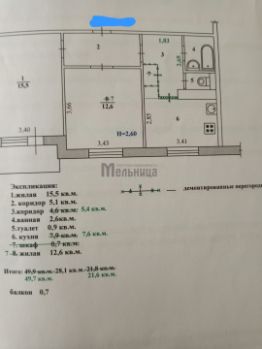 49,7 м²