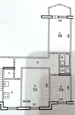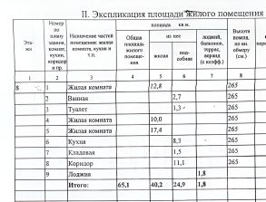 Квартира находится на восьмом этаже. Общая площадь — 65,1 кв. м. Из них 40,2кв. м — жилая площадь, а 8,3 кв. м — кухня.