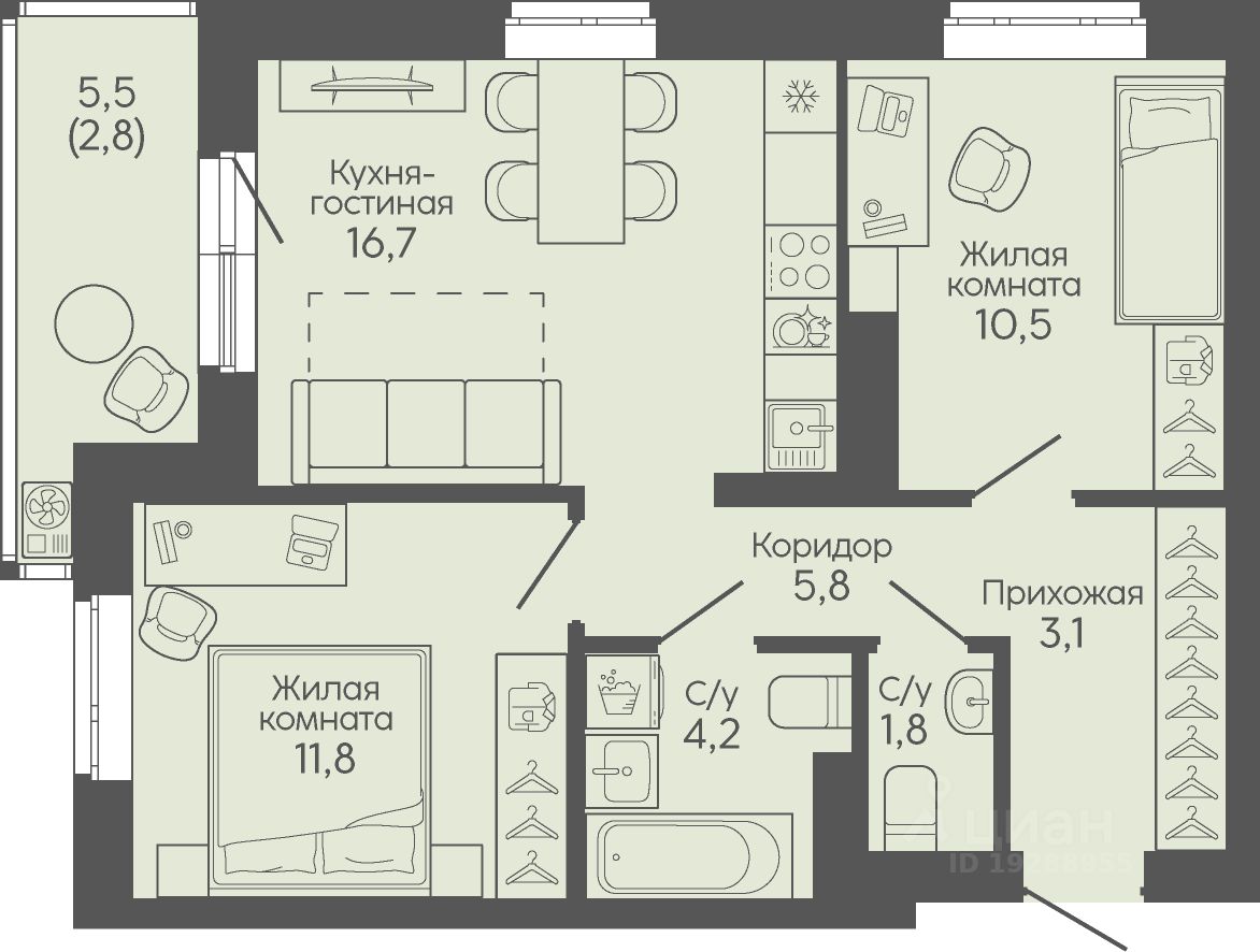 Общая площадь56,7 м²