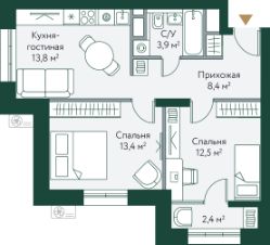 54,4 м²