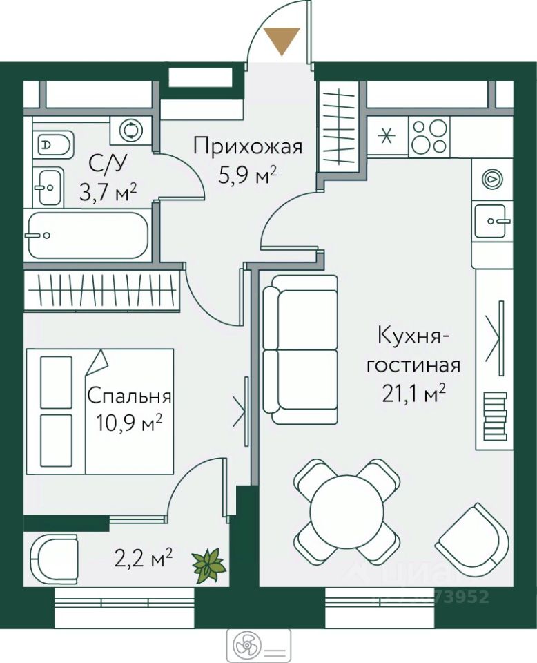 21,1 м²