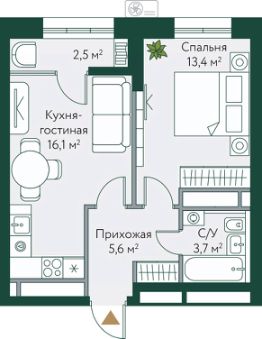 16,1 м²
