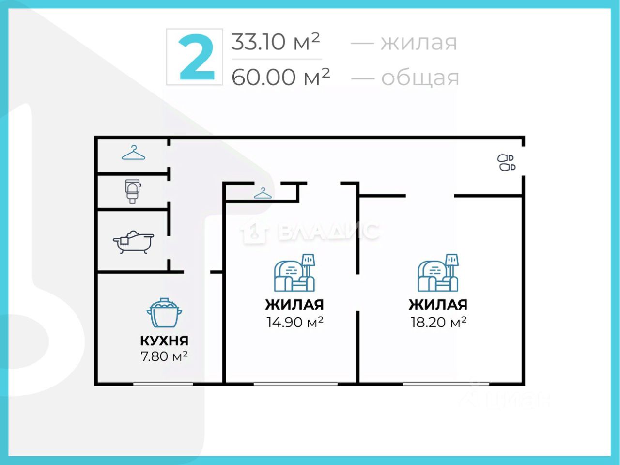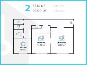 Планировка квартиры включает две комнаты площадью 14,9 и 18,2 кв. метра, что позволяет организовать пространство по своему вкусу. Квартира с окнами на улицу, и в ней предусмотрен один раздельный санузел.