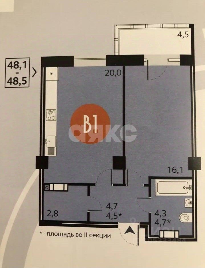 *. - площадь указана с учетом лоджии с теплыми полами.