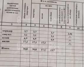 Общая площадь - 30,8 кв.м