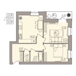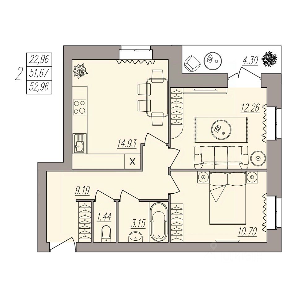 Общая площадь52,96 м²