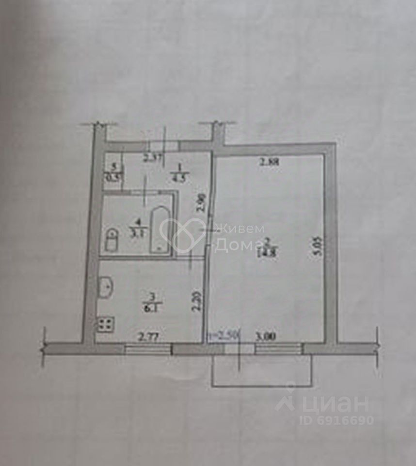 Брежневская планировка: общая 29.00 / жилая 14.80 / кухня 6.10 кв метров