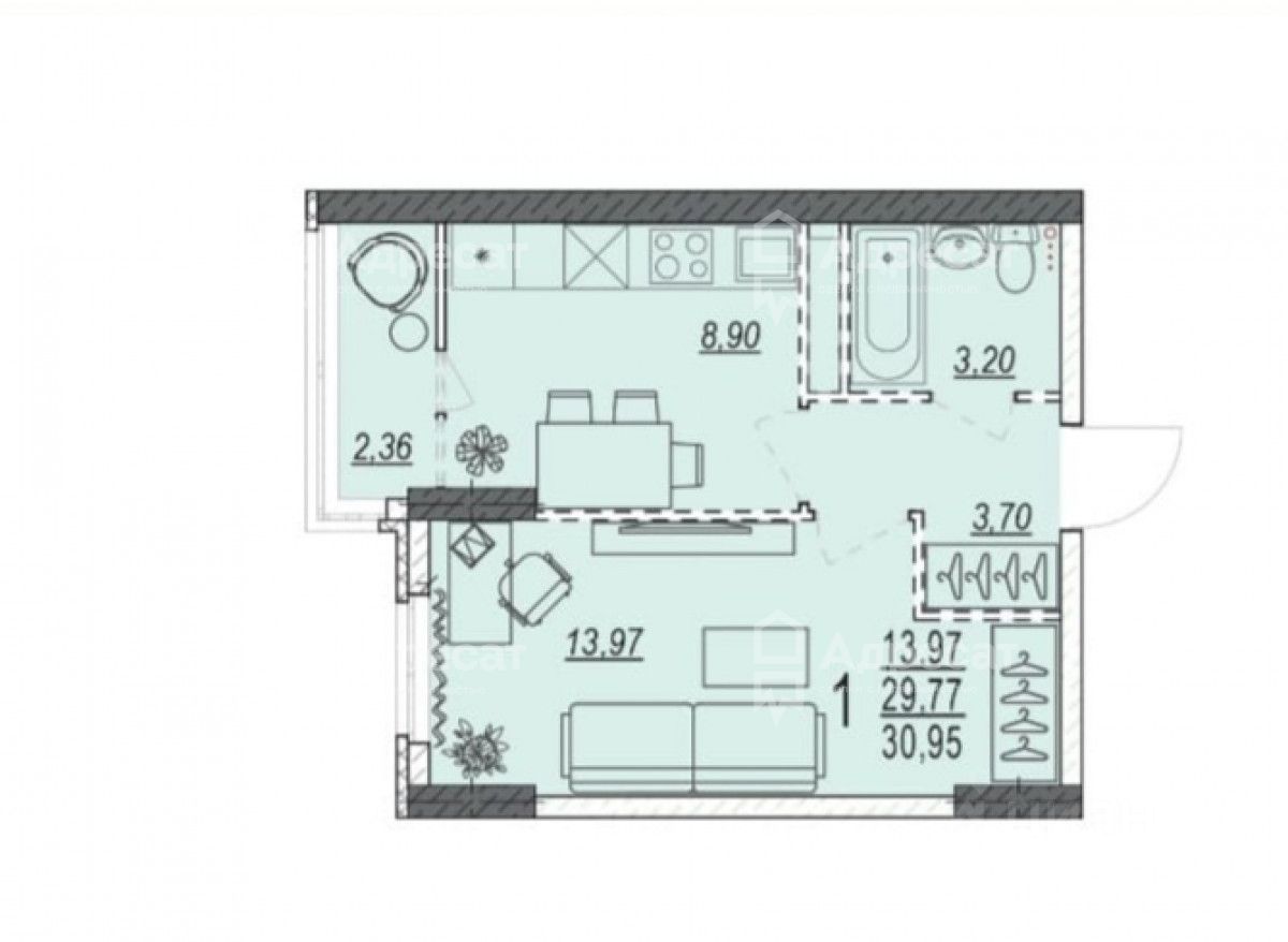 - Общая площадь: 32 кв.м