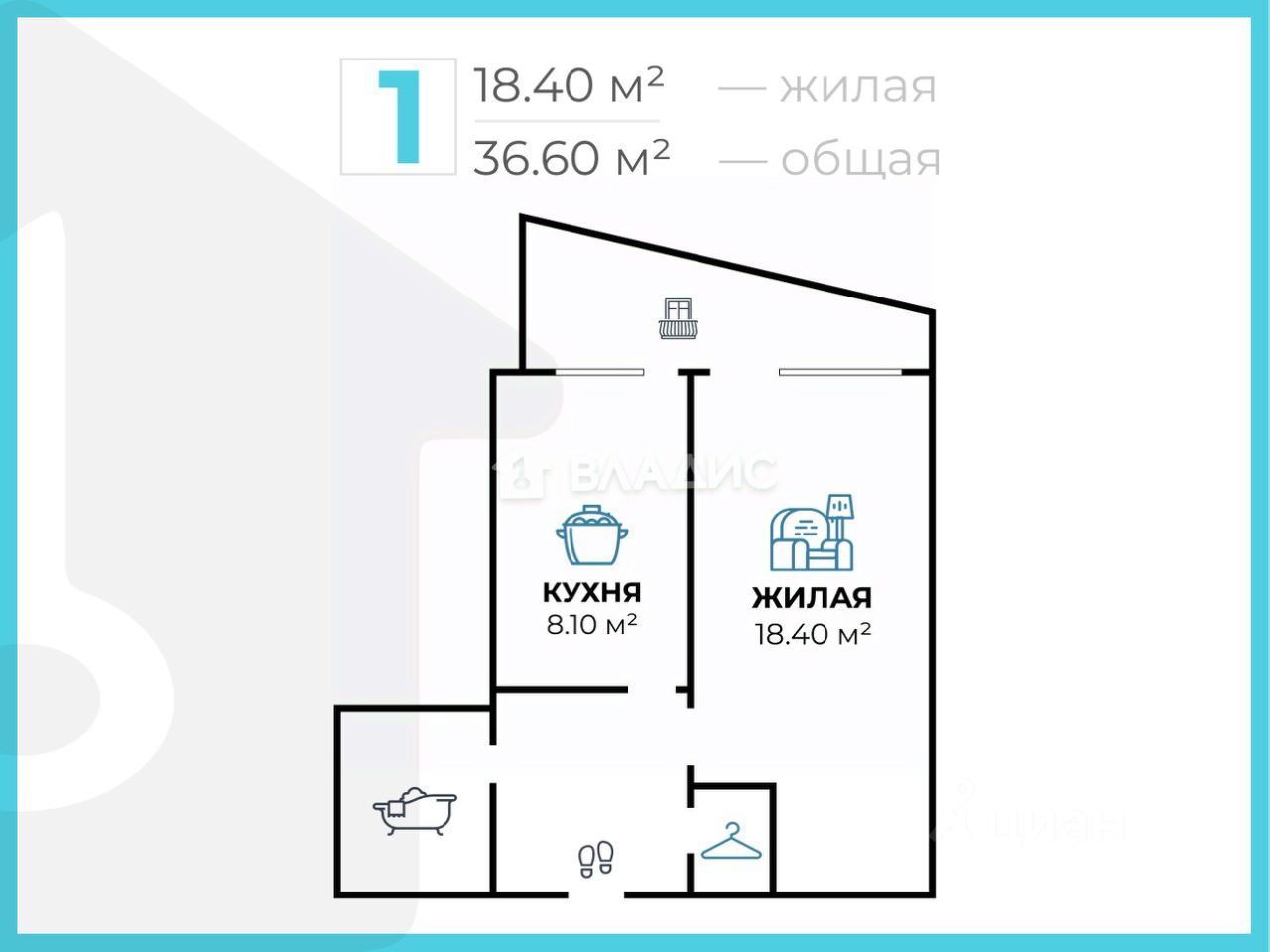 18,4 м²
