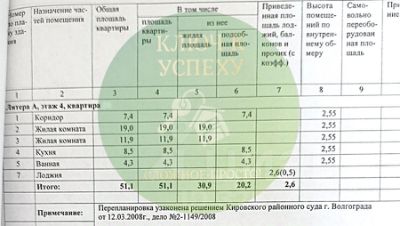 Общая площадь - 51.10 кв.м.
