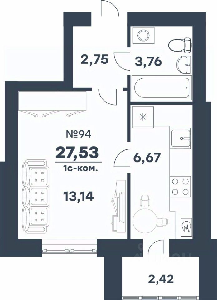 Продаётся 1-комнатная квартира в строящемся доме (ЖД 216 (Ижаева, д. 3в)), срок сдачи: IV-кв. 2026, общей площадью 27.53 кв.м., на 3 этаже. Микрорайон располагается в Советском районе города, который отличается развитой социальной и коммерческой инфраструктурой. В комфортной зоне доступа - ТРК "Акварель", гипермаркет "Лента", ВолГУ, Кардиоцентр.