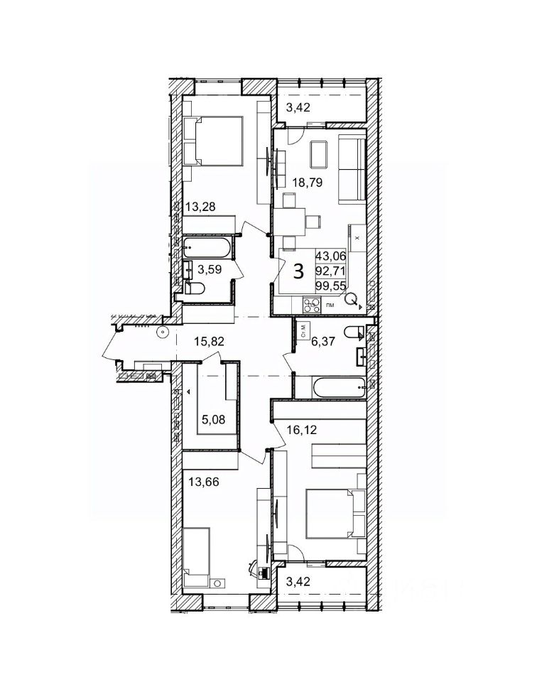 Общая площадь99,55 м²