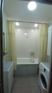 Общая площадь квартиры 66 кв.метров, распашонка. Комнаты изолированные - 17 + 21кв.м. правильной формы, расположены на разные стороны дома, во двор и на внешнюю сторону дома. В одной из комнат установлена гардеробная комната, что упростит хранение вещей. Просторный коридор -12 кв. м, кухня - 12 кв.м.- с выходом на большую застеклённую лоджию. Санузел раздельный. Во всей квартире натяжные потолки, высота - 2,7. Установлены 2 сплит-системы. В квартире частично остаётся мебель и техника. Собственник один, квартира без обременений.