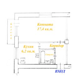 Квартира удобной планировки: общая площадь - 30,9 кв.м. + балкон, жилая площадь - 17,4 кв.м., площадь кухни - 6,2 кв.м.