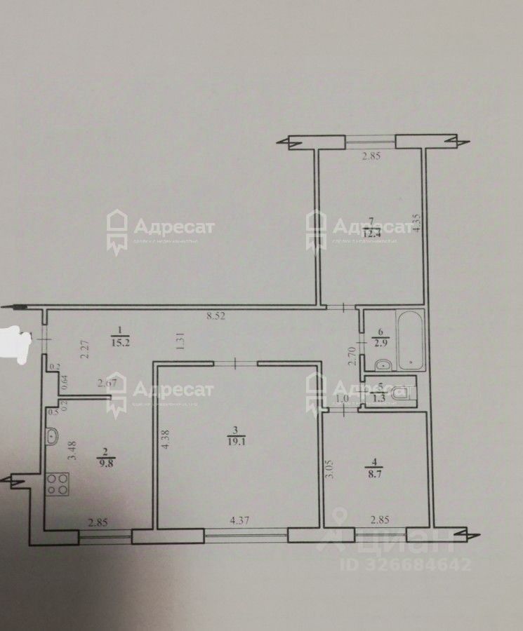 Жилая площадь- 40,2 м² (19,1+8,7+12,4);