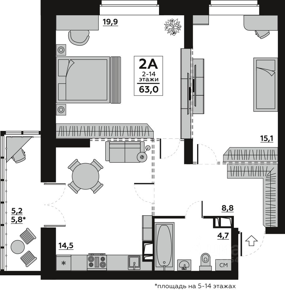 63,11 м²