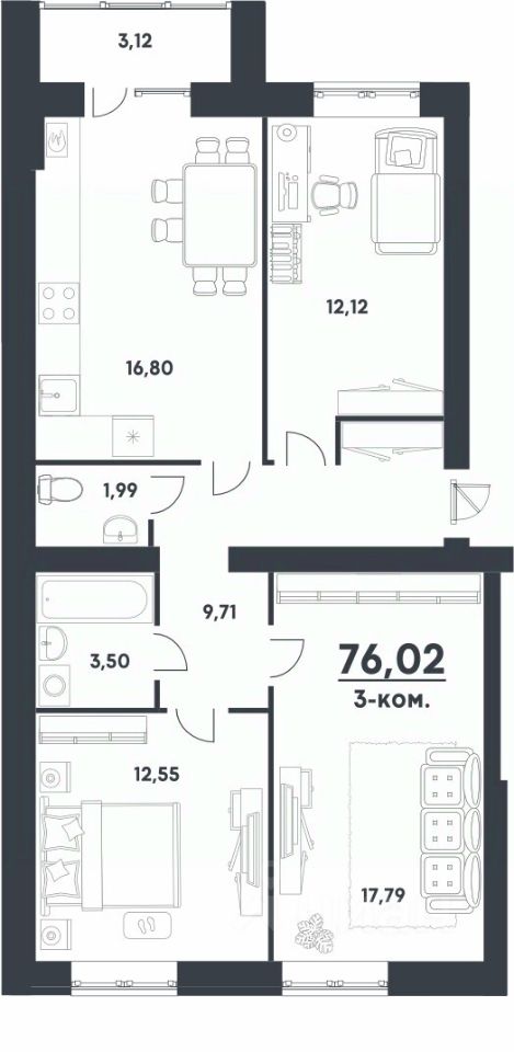 Продаётся 3-комнатная квартира в строящемся доме (ЖД 186 (Иссы Плиева, д. 1)), срок сдачи: I-кв. 2026, общей площадью 76.02 кв.м., на 1 этаже. Микрорайон располагается в Советском районе города, который отличается развитой социальной и коммерческой инфраструктурой. В комфортной зоне доступа - ТРК "Акварель", гипермаркет "Лента", ВолГУ, Кардиоцентр.