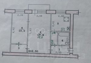 Хрущевская планировка: общая 43.80 / жилая 27.30 / кухня 6.30