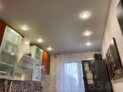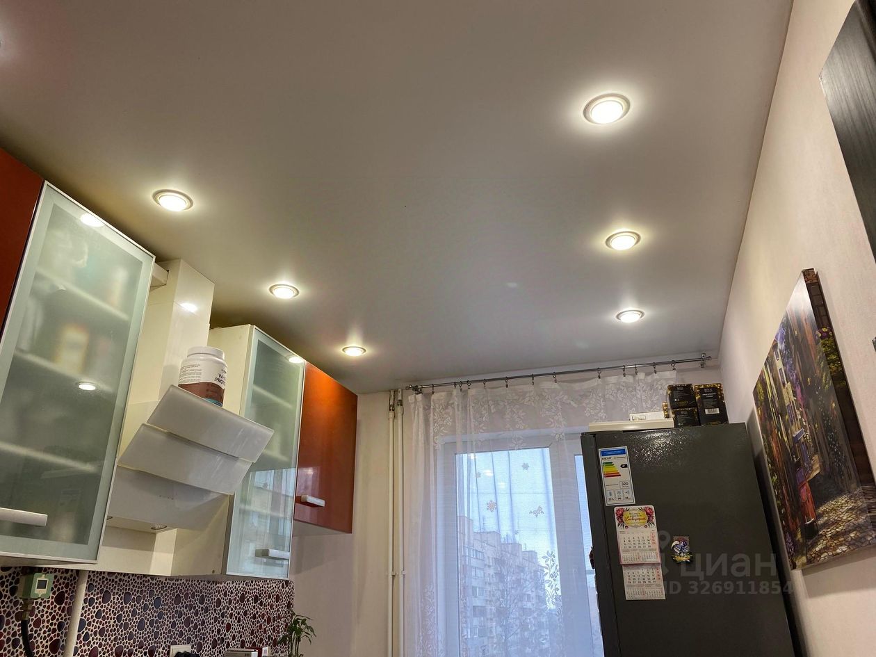 -Потолки натяжные с точечной подсветкой и люстры.