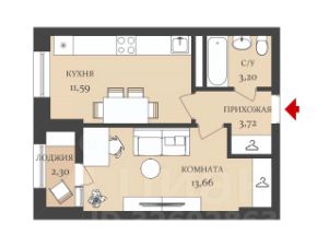 Жилая площадь - 13.3м2
