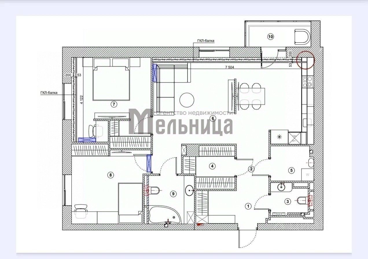 Два санузла, постирочная.