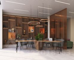 1й этаж с комьюнити-зоной, ресепшеном, и местами для работы и общения