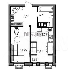 Общая площадь 43 кв.м. Удобная планировка!