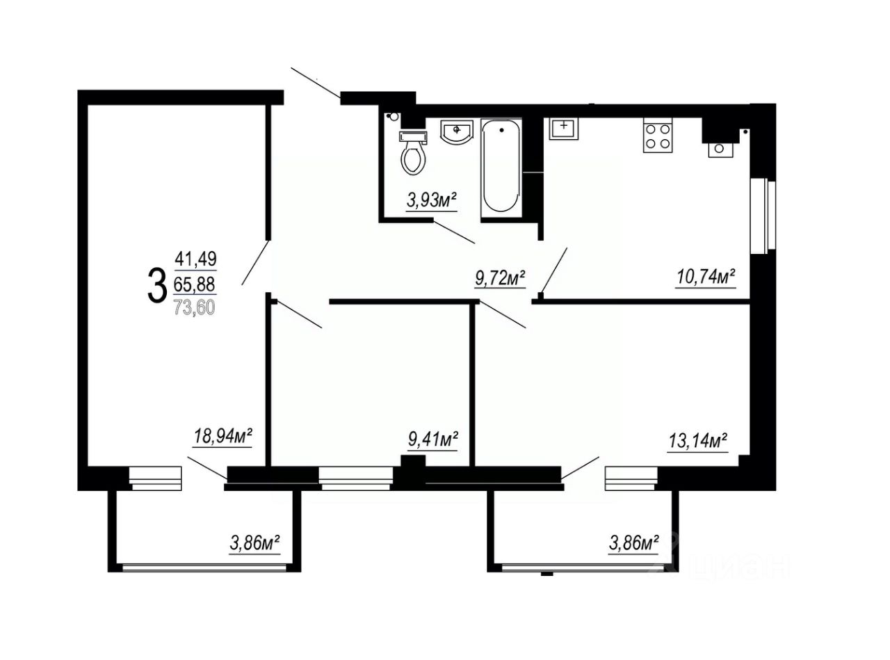 Общая площадь73,6 м²