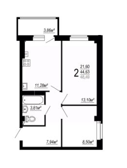 Общая площадь48,49 м²