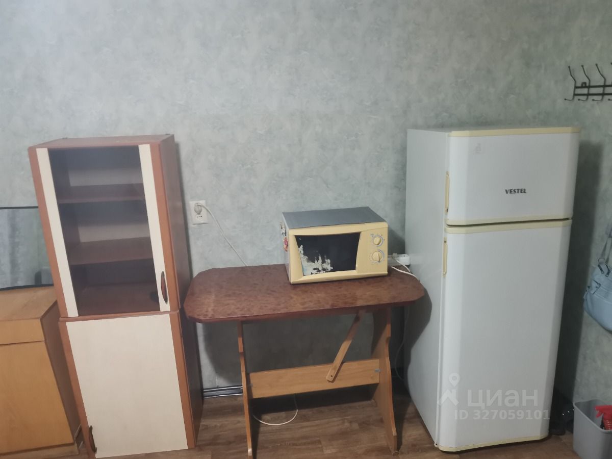 Уютная и светлая комната в общежитии секционного типа. Потолок натяжной, окно пластиковое, на полу линолеум, металлическая входная дверь. При продаже остаются, шкаф — купе, холодильник, диван, кухонные навесные шкафчики, обеденный стол и микроволновая печь. Есть стиральная машина. Места общего пользования — кухня, туалет и душ на 4 комнаты. Соседи порядочные, доброжелательные люди. Есть два общих просторных балкона — на кухне и в общем коридоре.