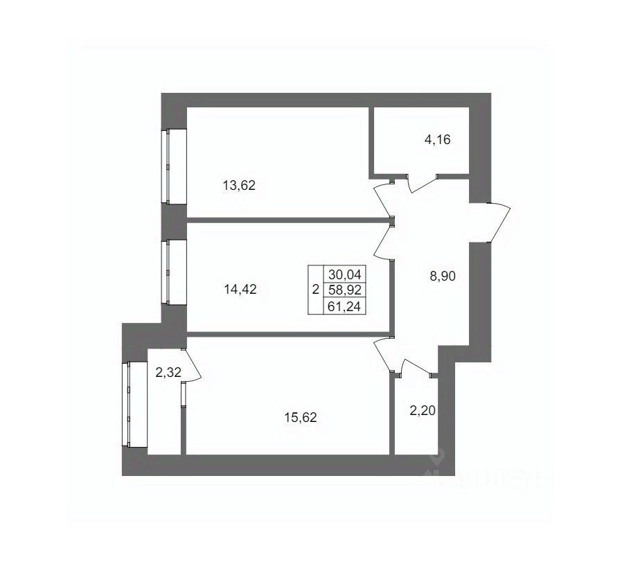 Общая площадь61,24 м²