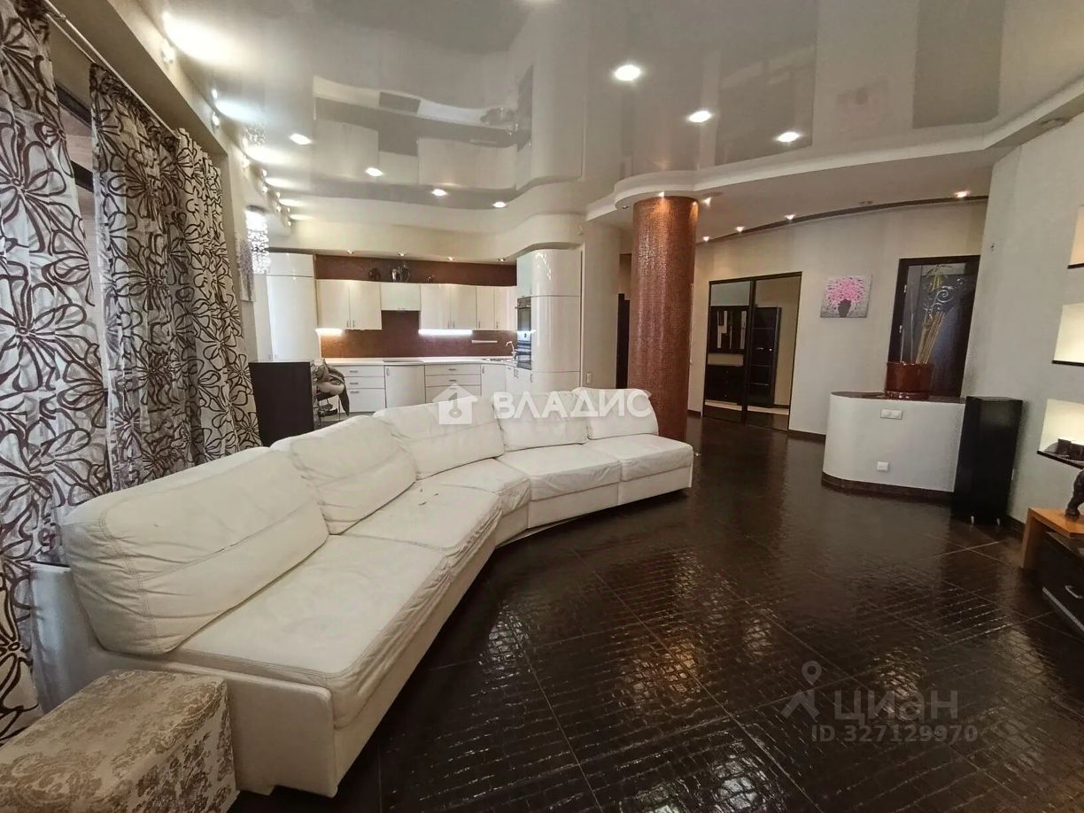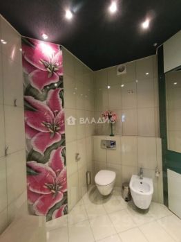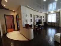 Площадь квартиры 134,6 кв. м, жилая площадь 63,9 кв. м, комнаты 17,4+19,6+26,9 кв. м, кухня 23 кв. м; 2 совмещенных санузла с подогревом, открытый балкон, 2 застекленные лоджии с подогревом, просторный коридор и гардеробная комната.