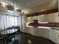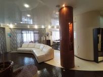 Квартире придает шика мозаичное исполнение ручной работы (фартук на кухне,декоративная колонна, откосы и плинтуса).Дополняют картину дверные ручки c кристаллами Swarovski, итальянский керамогранит входной зоны и паркет в спальне. Световое исполнение присутствует по всей квартире.