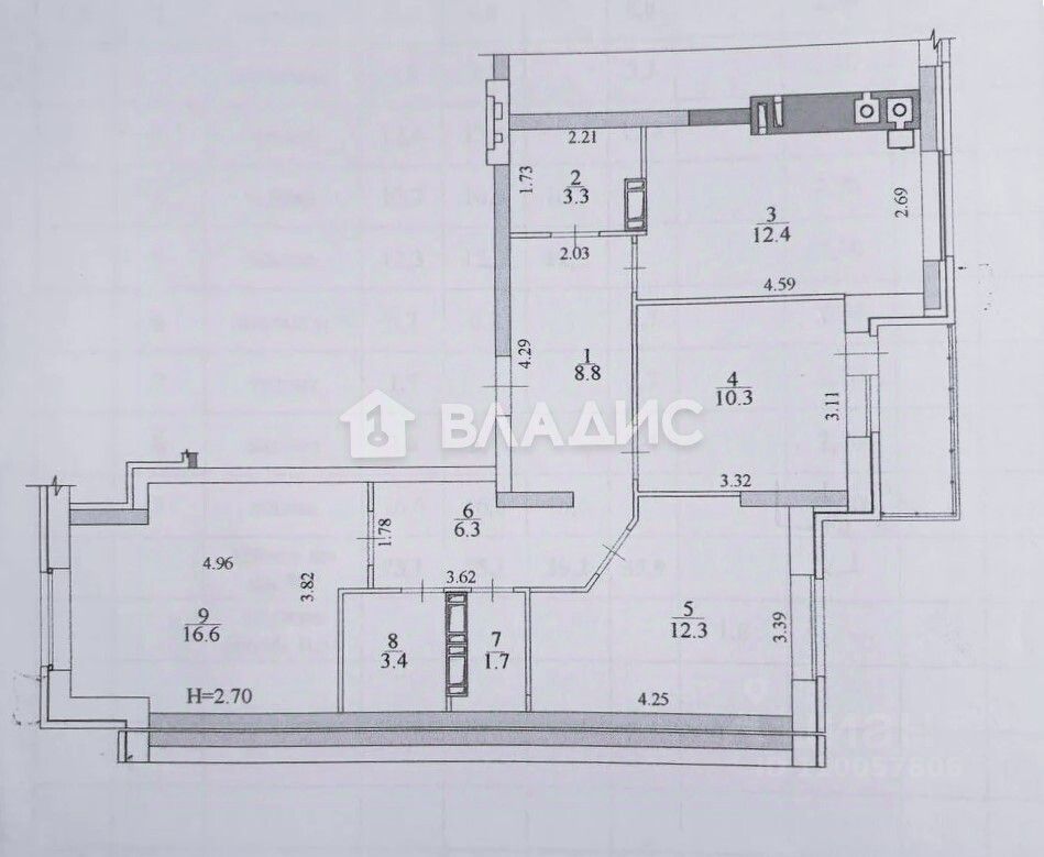 три раздельные комнаты: 12,3 м², 16,6 м² и 10,3 м²;кухня — 12,4 м²;ванная комната — 3,4 м²;раздельный туалет — 1,7 м²;кладовая — 3,3 м²;коридор — 15,1 м²;застеклённая панорамная лоджия — 1,8 м².индивидуальное отопление благодаря двухконтурному газовому котлу, что существенно снижает коммунальные платежи;тёплые полы в кухне, коридоре, ванной комнате и туалете.