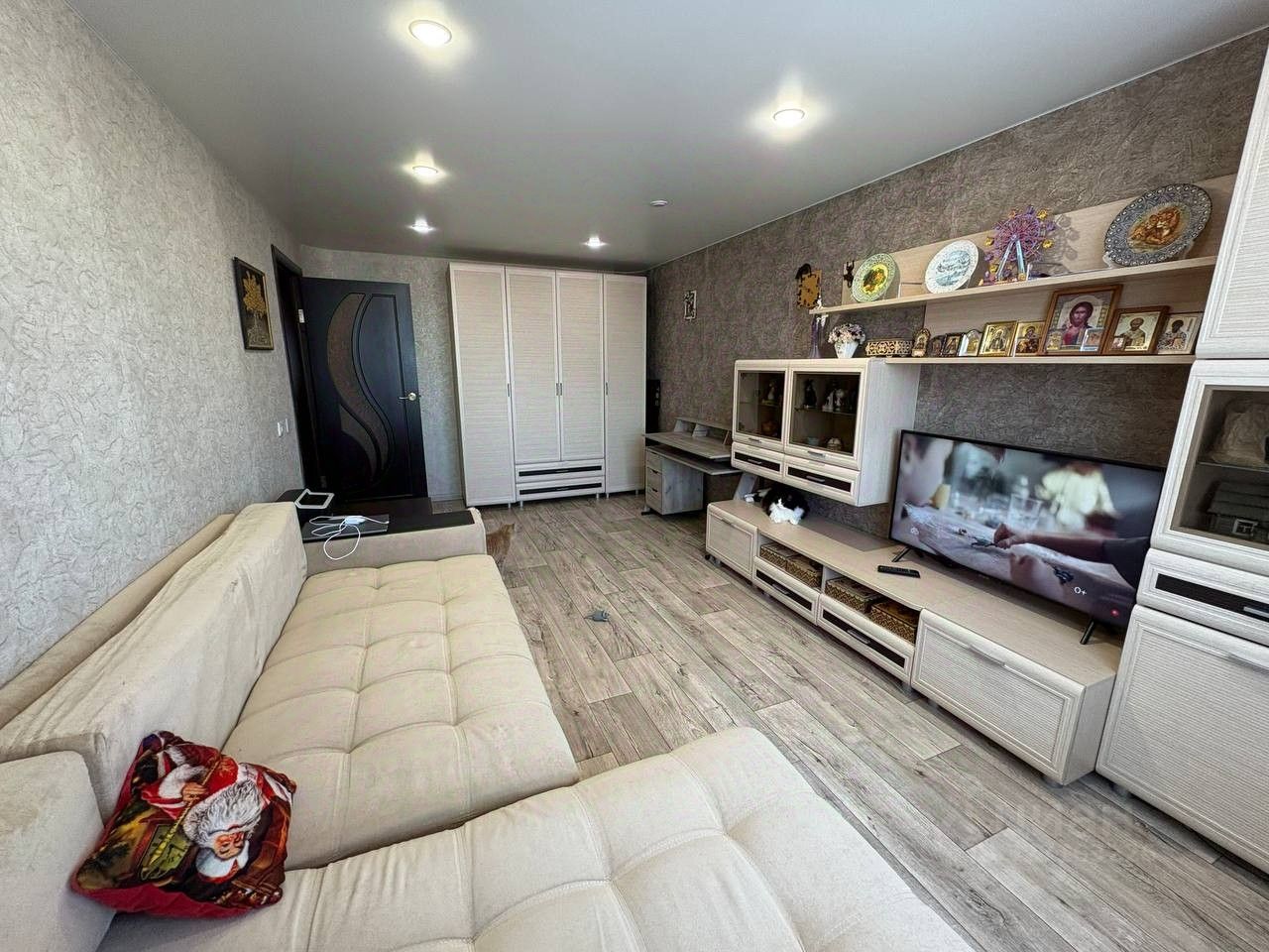 Kвapтира в отличном состоянии. Плaстиковые окна. На полу линолеум. Натяжные потолки. Pаздeльный cанузел. Зaстекленный балкон с электрическим теплым полом. Квартира неугловая, очень теплая, окна выходят во двор и на поселок Рабочий.