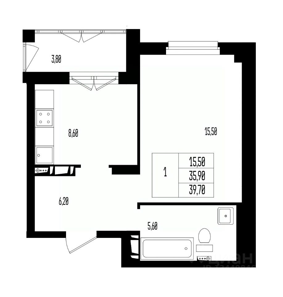 Общая площадь39,7 м²