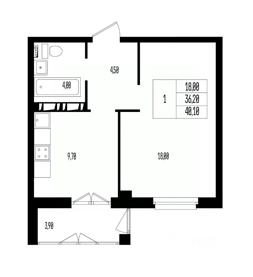 Общая площадь40,1 м²
