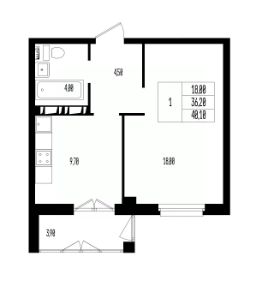 Квартира свободной планировки, 40,1 м²