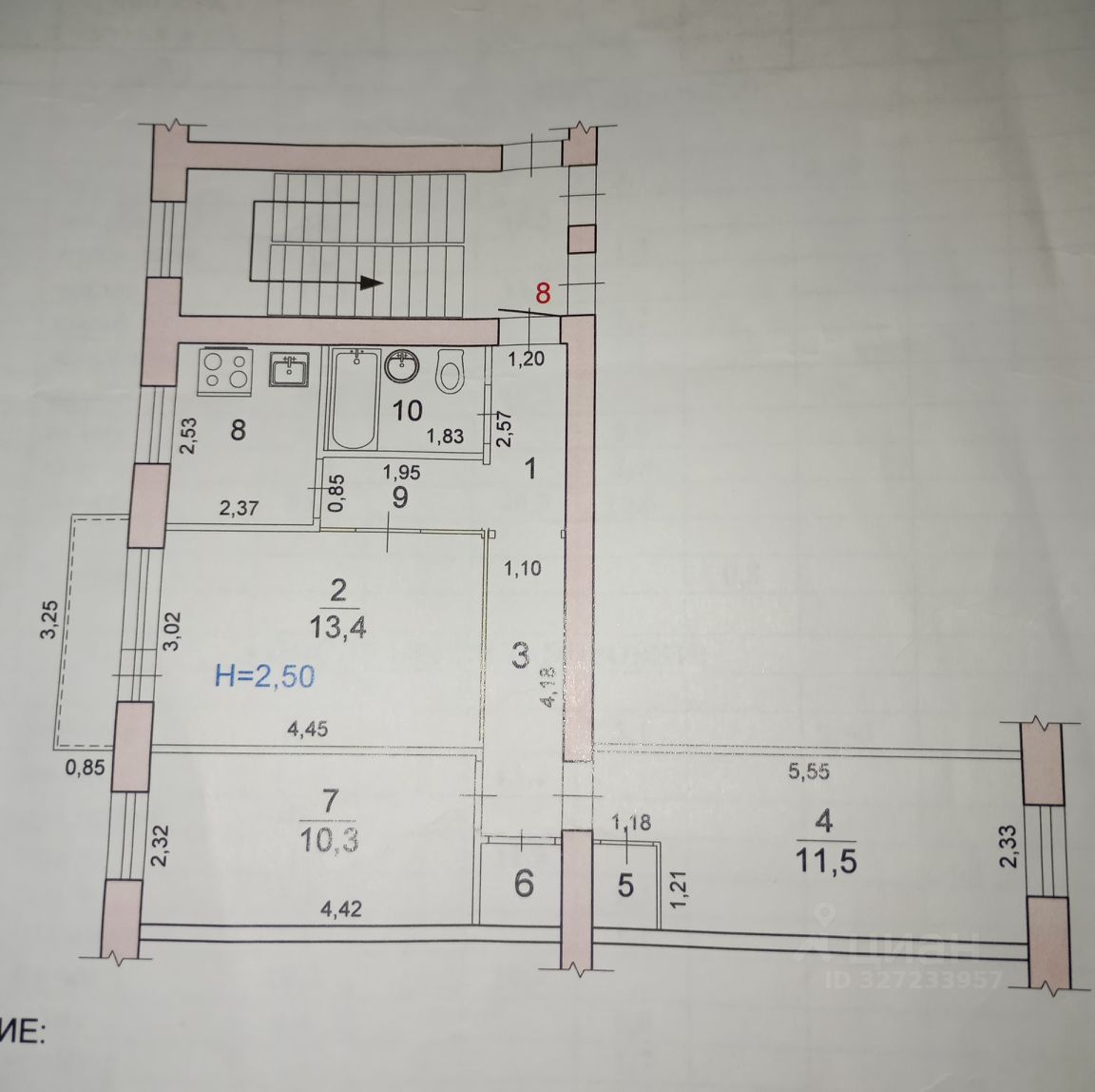 Продается трехкомнатная квартира, общая площадь — 55.8 кв. м, жилая — 40 кв. м, кухня — 6 кв. м. Квартира находится на 2 этаже 5-этажного кирпичного дома, построенного в 1965 году. Высота потолков составляет 2.3 метра, что обеспечивает комфорт и свободу движения. Окна выходят во двор, поэтому в квартире тихо и спокойно.