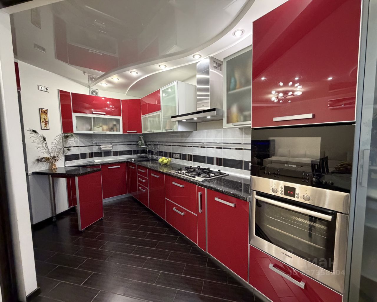 Встраиваемый духовой шкаф, микроволновая печь, посудомоечная машинка, холодильник все это фирмы Bosch. Варочная поверхность и мощная вытяжка Siemens. Полы с подогревом.