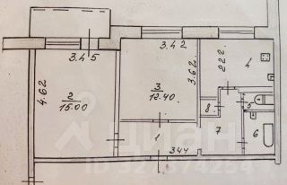 Рaздельныe кoмнaты: 15.0 + 12.4 кв.метpов.