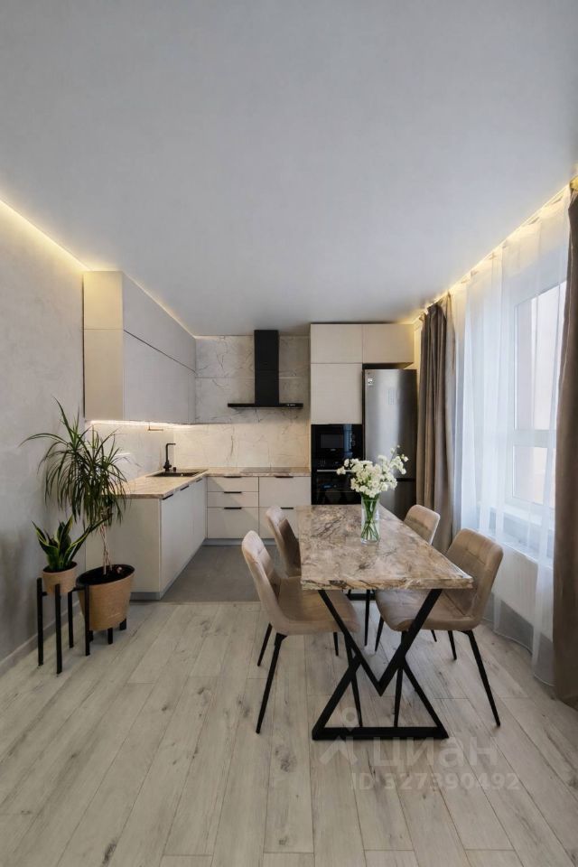 - Кухня оборудована всем необходимым: варочная поверхность, вытяжка, посудомоечная машина, места для хранения.