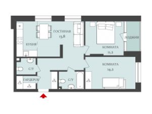 две спальни, одна с выходом на застекленную лоджию.