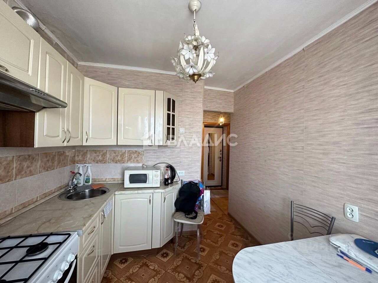 Общая площадь квартиры составляет 33,8 квадратных метров, из которых 19,3 квадратных метра приходится на жилую площадь, а 7,3 квадратных метра — на кухню.